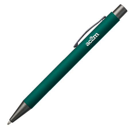 Der JAMAICA Metall-Kugelschreiber hat ein stilvolles Rubber-Finish und ist mit anthrazitfarbenen Details (Drücker, Clip und Spitze) versehen. Der Stift kann mit Lasergravur personalisiert werden und ist blauschreibend.