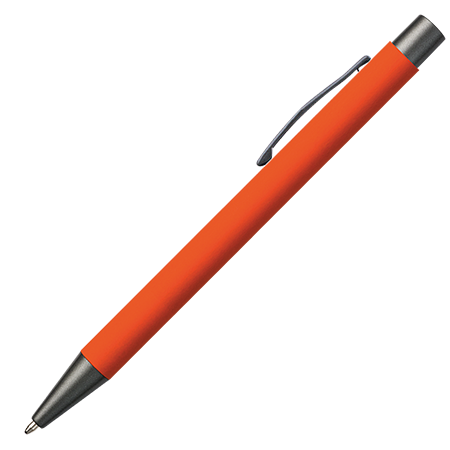 Der JAMAICA Metall-Kugelschreiber hat ein stilvolles Rubber-Finish und ist mit anthrazitfarbenen Details (Drücker, Clip und Spitze) versehen. Der Stift kann mit Lasergravur personalisiert werden und ist blauschreibend.