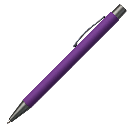 Der JAMAICA Metall-Kugelschreiber hat ein stilvolles Rubber-Finish und ist mit anthrazitfarbenen Details (Drücker, Clip und Spitze) versehen. Der Stift kann mit Lasergravur personalisiert werden und ist blauschreibend.