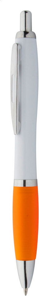 Kunststoff-Kugelschreiber mit weißem Schaft, farbiger Griffzone und verchromten Elementen,... mehr