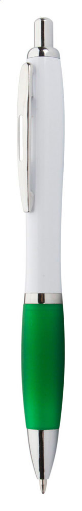 Kunststoff-Kugelschreiber mit weißem Schaft, farbiger Griffzone und verchromten Elementen,... mehr