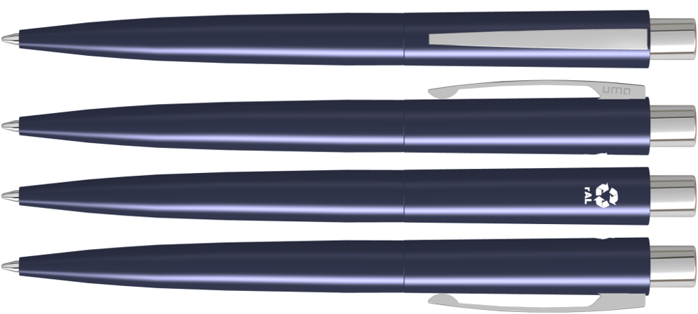 Metall-Druckkugelschreiber mit matt lackiertem Gehäuse aus recyceltem Aluminium. Metallclip und Drücker glanzverchromt.