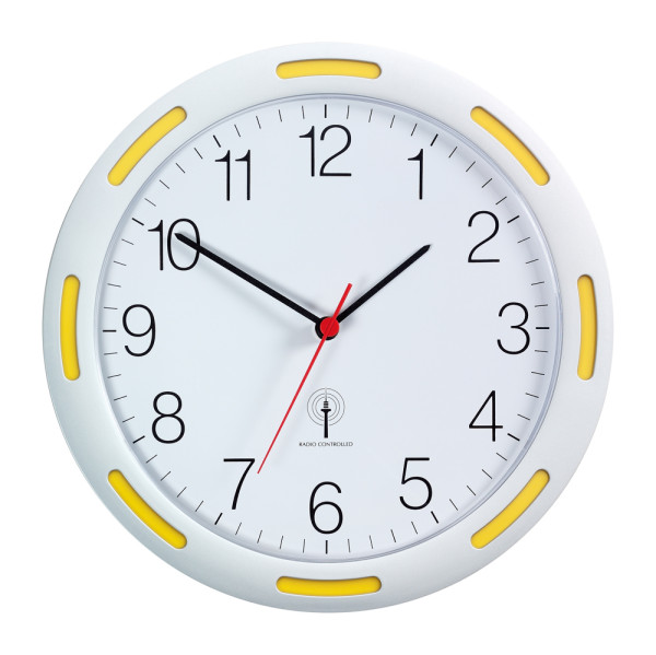 Ausstattung: Kunststoffglas, Zifferblatt Weiß, arabisch, Zeigerpaar schwarz, SEK rot, Gehäuserand farblich unterlegt, Batterie nicht im Lieferumfang enthalten