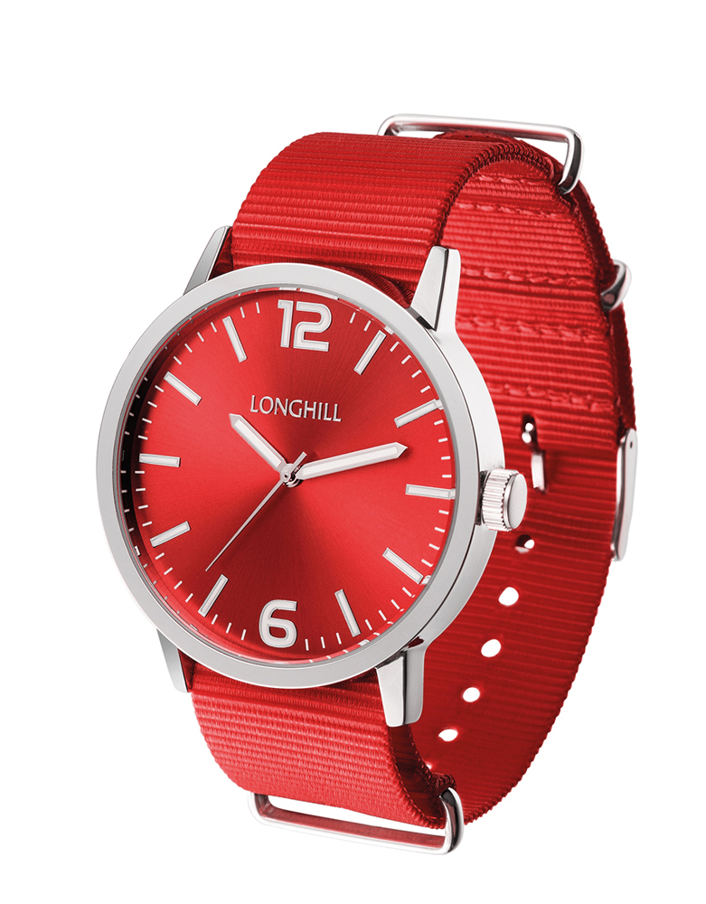 Ausstattung: Gehäusetiefe: 8,30 mm, Uhrwerk: PC 21, Zifferblatt rot, Zeiger silber, fluoreszierend, Gehäuseboden Edelstahl, 3 ATM water resistant, Textilarmband 22 mm rot
