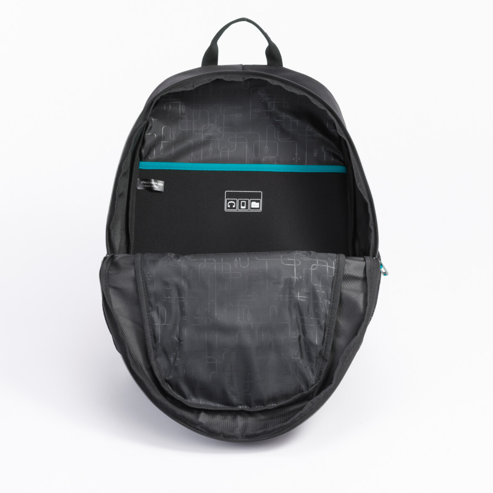 Der Rucksack City is leicht und geräumig, verfügt über ein Hauptfach mit einer 15-Zoll-Laptoptasche, Taschen für kleine Geschäftsutensilien und 2 Seitentaschen. Zusätzlich bietet das Modell einen verstärkter Rücken und Schultergurte, Metallreißverschlüsse und farbige Nähte. Dank einer eloxierten Metallplatte ist der Rucksack ideal für Branding.