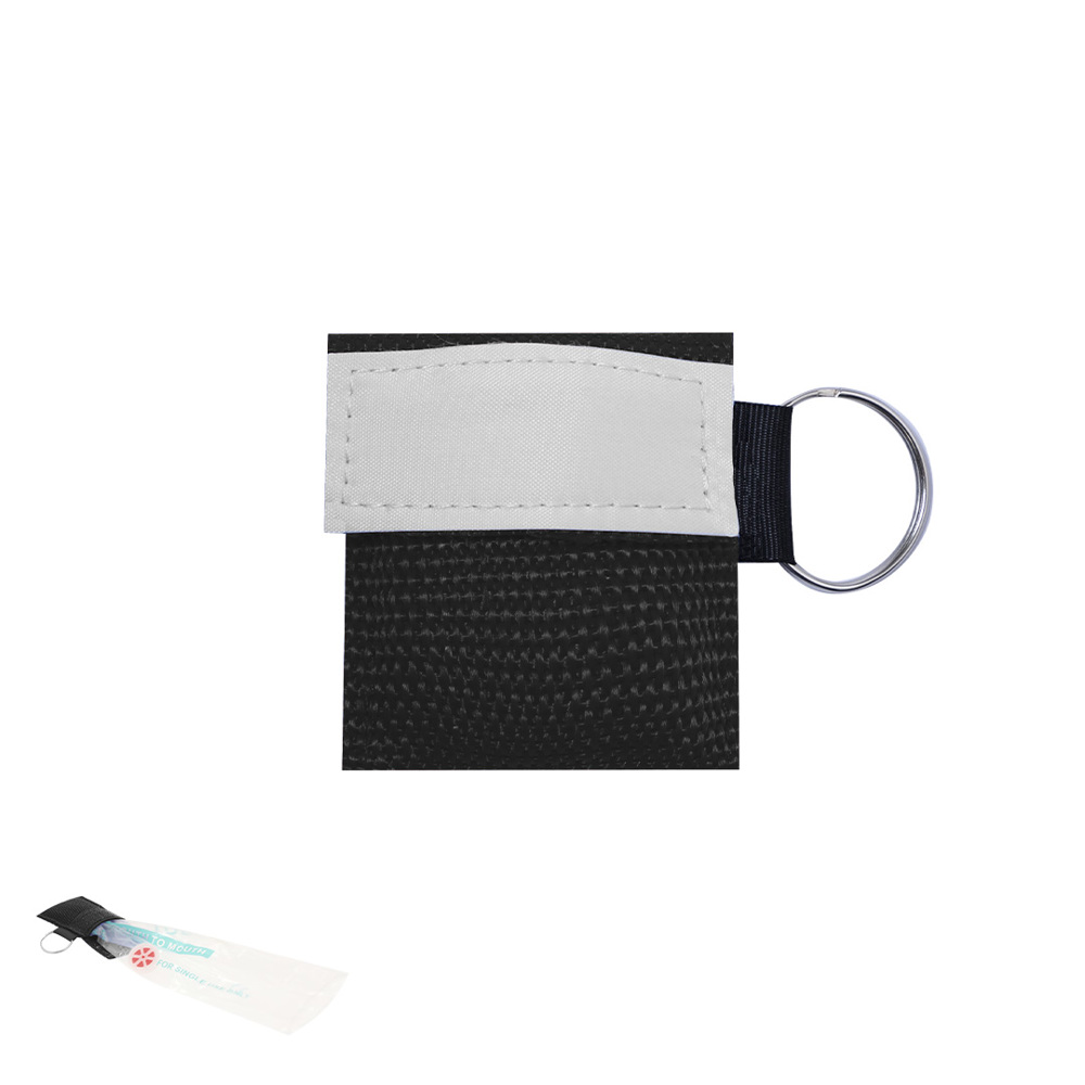 Schlüsselanhänger-Maske zur Wiederbelebung CRP, im kompaktformat in einer kleinen 600D Polyester-Tasche mit Klettverschluss und Schlüsselring, um sie in einen Schlüsselanhänger zu verwandeln.