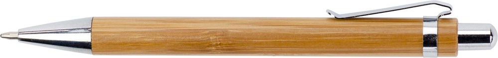 Kugelschreiber aus Bambus, mit Metall-Clip, -Spitze und Drücker. Mit blauer Mine.