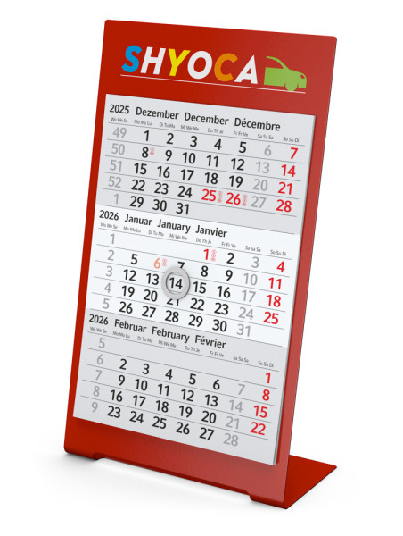 Tischkalender Desktop 3 Color Bestseller, 1 Jahr, rot