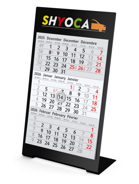 Der Desktop 3 Color Bestseller verbindet modernes Design mit Funktionalität in einem hochwertigen Tischkalender. Mit einem farbig pulverbeschichteten Metallaufsteller und einem magnetischen Kalenderblock ist dieser Kalender sowohl praktisch als auch optisch ansprechend. Die individuelle Werbefläche und die hochwertige Verarbeitung machen ihn zu einem idealen Werbemittel für anspruchsvolle Unternehmen. Hergestellt in Deutschland, steht der Kalender für Qualität und Präzision.