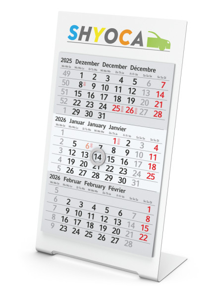 Der Desktop 3 Color Bestseller verbindet modernes Design mit Funktionalität in einem hochwertigen Tischkalender. Mit einem farbig pulverbeschichteten Metallaufsteller und einem magnetischen Kalenderblock ist dieser Kalender sowohl praktisch als auch optisch ansprechend. Die individuelle Werbefläche und die hochwertige Verarbeitung machen ihn zu einem idealen Werbemittel für anspruchsvolle Unternehmen. Hergestellt in Deutschland, steht der Kalender für Qualität und Präzision.