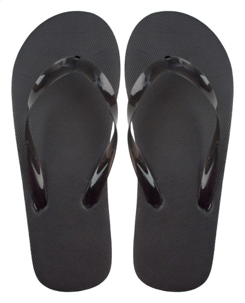 Zehensandalen aus Polyester mit farblich abgestimmten, transparenten PVC-Riemen.