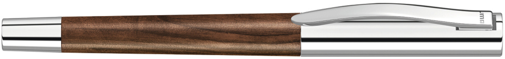 Metall-Rollerball mit Schaft aus FSC®-zertifiziertem Walnussholz und gefedertem Clip. Kappe und Clip glanzverchromt. Der Naturstoff Holz variiert sowohl in der Farbigkeit des Holzes als auch in der Struktur (Maserung).