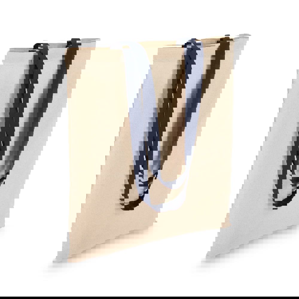 Klassische Tragetasche aus 140 g/m² Baumwolle mit natürlichem Körper und kontrastfarbenen Griffen. Lange Griffe für bequemes Tragen über der Schulter. Oeko-Tex®-zertifiziert. Ideal für Veranstaltungen, den Einzelhandel oder den täglichen Gebrauch.