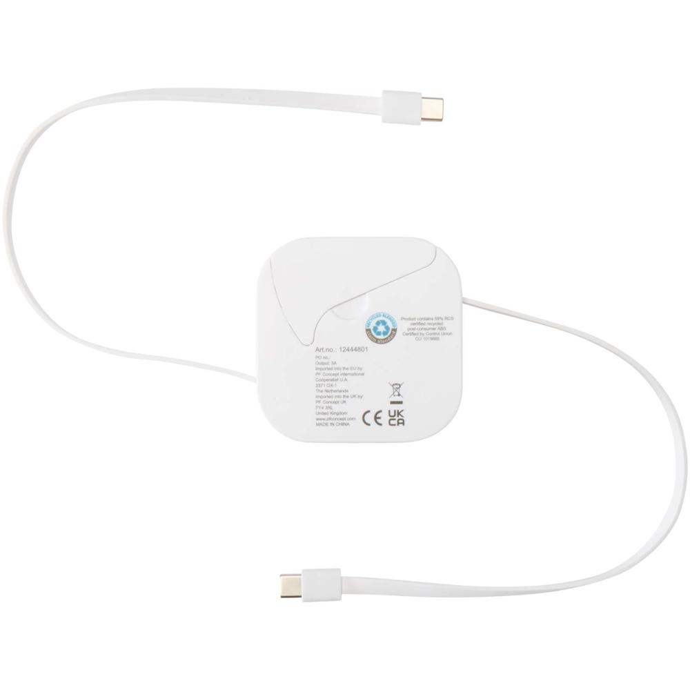 Der Gloas ist Ihr multifunktionales Lade- und Smartphone-Werkzeug aus recyceltem Kunststoff. Es verfügt über ein einziehbares 100W USB-C Kabel zum schnellen Laden und zur Datenübertragung sowie einen USB-A Adapter und einen 2-in-1 Micro-USB-/Lightning-Adapter. Das Kabel ist leistungsstark genug, um die meisten Laptops, Tablets und Smartphones schnell zu laden, und es ist außerdem kompatibel mit CarPlay und Android Auto. Im Inneren des Geräts befindet sich ein Werkzeug zum Auswerfen von SIM-Karten, Fächer für eine Nano-SIM und eine microSD-Karte sowie eine integrierte Telefonladestation. Letztere macht das Gerät ideal für Videoanrufe oder Streaming. Alles, was Sie brauchen, in einem kompakten Design.