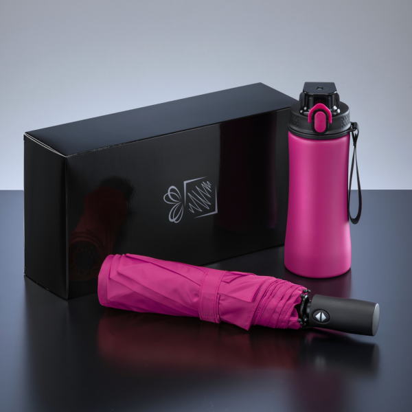 Ein praktisches Set, das im täglichen Gebrauch gut funktioniert, bestehend aus einer Stahlwasserflasche und einem automatischen Regenschirm aus der Primokollektion. Die Wasserflasche besteht sowohl an der Außen- als auch an der Innenschale aus robustem 18/8-Edelstahl in Lebensmittelqualität und gewährleistet so höchste Ansprüche an Qualität und Haltbarkeit. Dank seiner ergonomischen Form bietet das Produkt einen bequemen und sicheren Halt. Das innovative Design umfasst einen praktischen Ein-Klick-Öffnungsmechanismus für schnellen und einfachen Zugriff auf Ihr Getränk. Wenn Sie die Flasche nicht verwenden, können Sie den Verschluss verschließen, um ein Auslaufen des Inhalts zu verhindern.