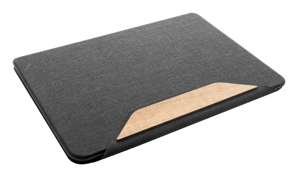 Dokumentenmappe im A4-Format aus RPET-Polyester mit Walnussholzdetails, mehreren Organizer-Innentaschen und Magnetverschluss. Inklusive Notizblock mit 20 linierten Seiten aus Recyclingpapier.