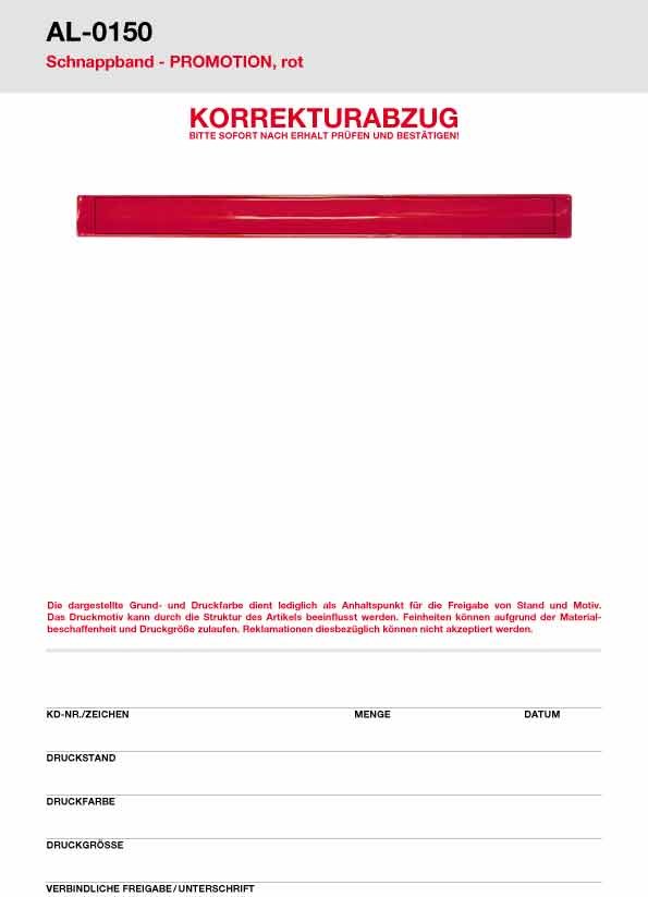 Unsere Schnappbänder PROMOTION werden nach EN71 produziert und sind in zehn Standardfarben erhältlich. Die Bänder mit Metallkern im Inneren sind direkt auf der Folie bedruckbar. Die Rückseite ist mit schwarzen Velourstoff überzogen. Toller Event- und Messeartikel.