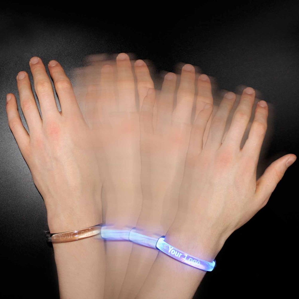 Unsere blinkenden Armbänder MOTION aus transparenter TPU-Flachfaser reagieren auf Bewegung und Musik/Geräusche. Sie können aus sieben verschiedenen Leuchtfarben wählen. Sie sind der ideale Begleiter bei Konzerten, Events, beim Radfahren, Wandern oder Joggen. Ausgestattet mit sehr hellen LED`s die mit Ein-/ Ausschalter gesteuert werden können. Die beiden Knopfzellen sind transportgesichert.