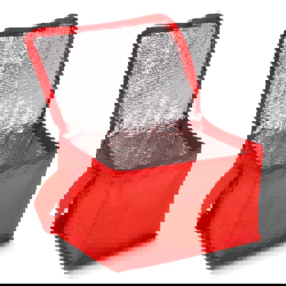 Recycelte PET-Kühltasche für 6 Dosen aus 75 g/m² Non Woven mit Aluminiumfolienfutter. Leicht und praktisch, um Getränke kühl zu halten.