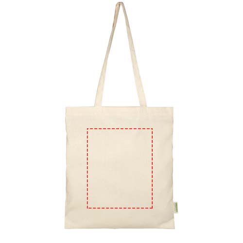 Tragetasche aus 100 % OCS zertifizierter 100 g/m² Bio Baumwolle aus Indien mit einem großen offenen Hauptfach, das viel Platz für alle wichtigen Dinge bietet. Dank der 32 cm langen Griffe lässt sie sich bequem und einfach überallhin mitnehmen. Beständigkeit bis zu 5 kg. Fassungsvermögen: 7 Liter.