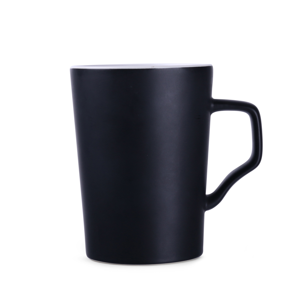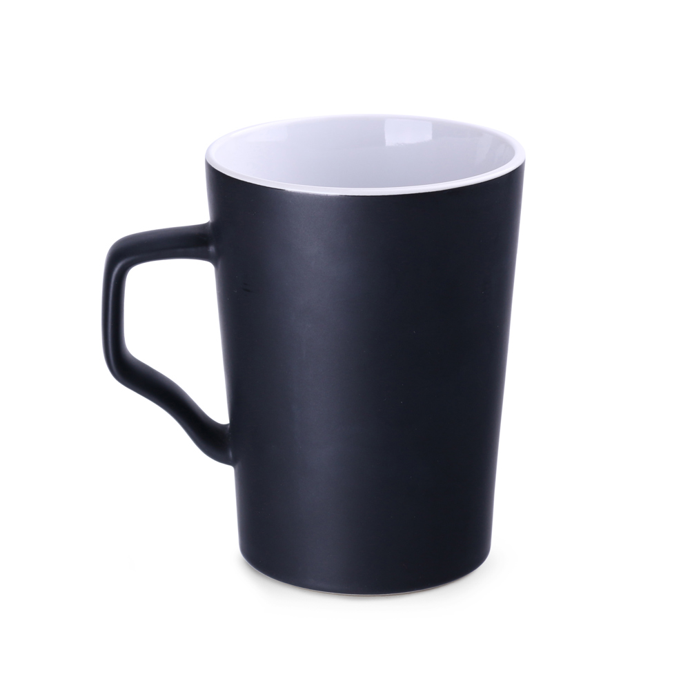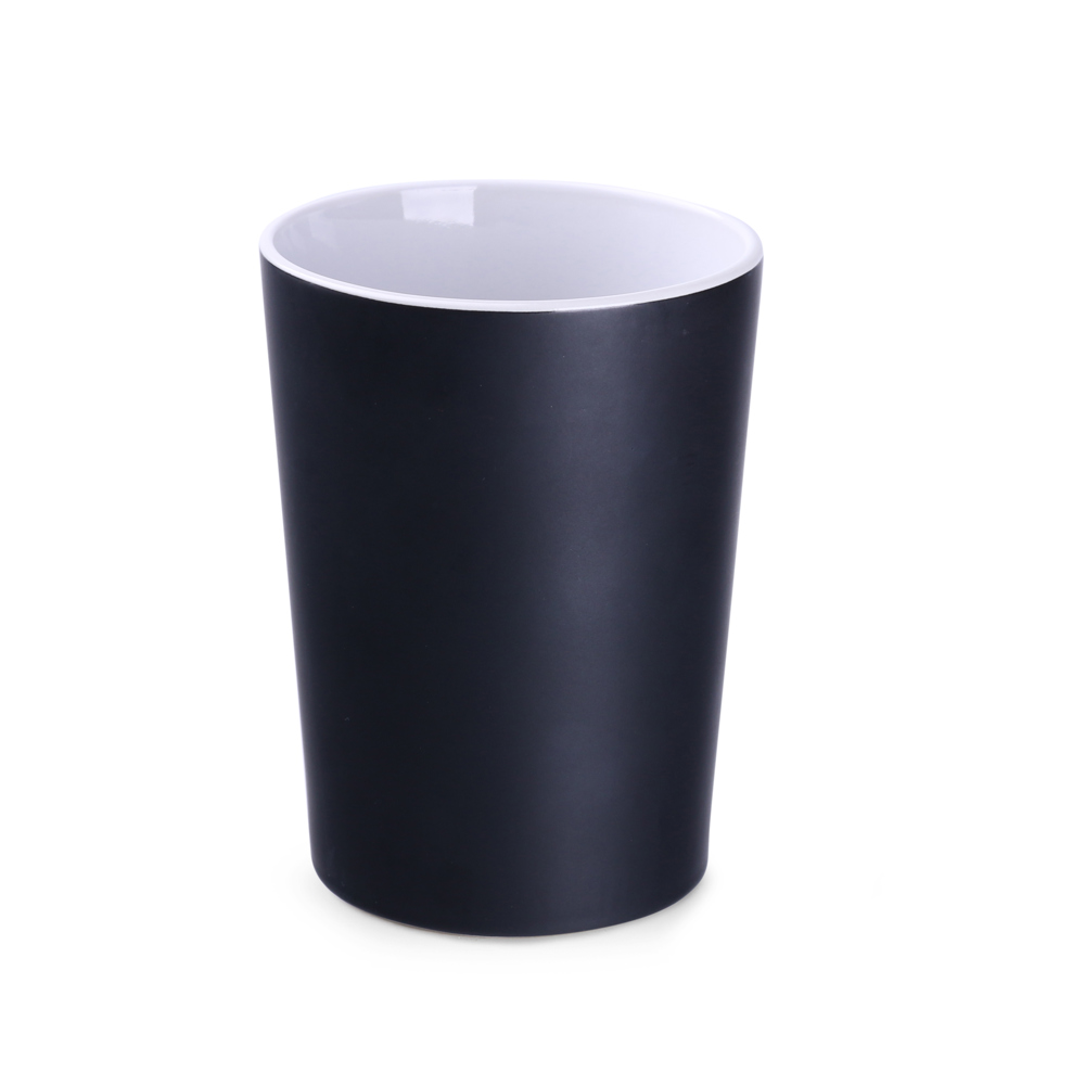 Ein eleganter Becher mit dem luxuriösen Touch der mattschwarzen Supreme-Oberfläche auf der Außenseite. Das Produkt ist in zwei Innenfarben erhältlich: weiß und schwarz. Schlichte, gediegene Wände werden die Werte des Unternehmens perfekt unterstreichen.
