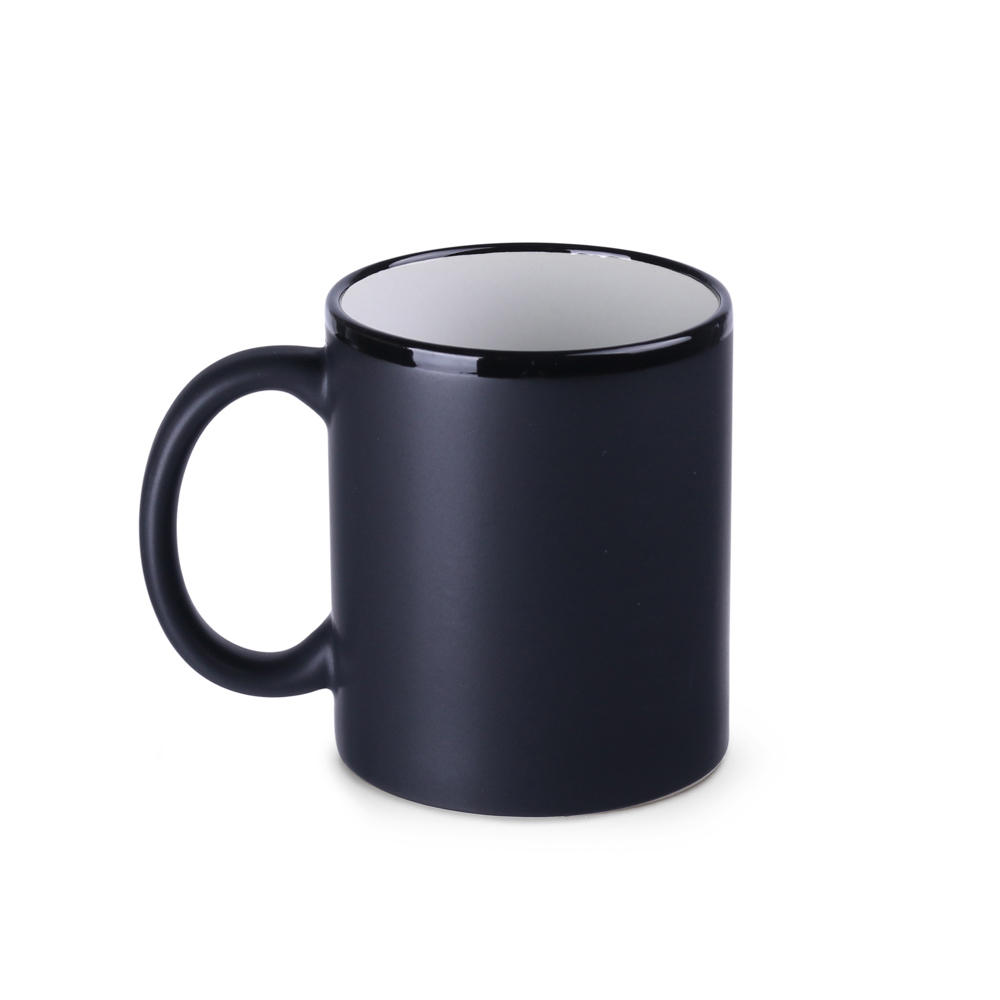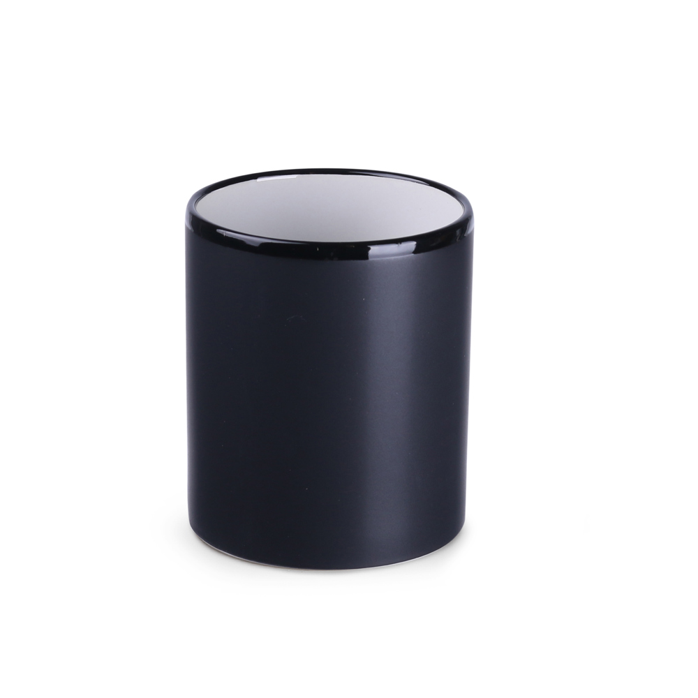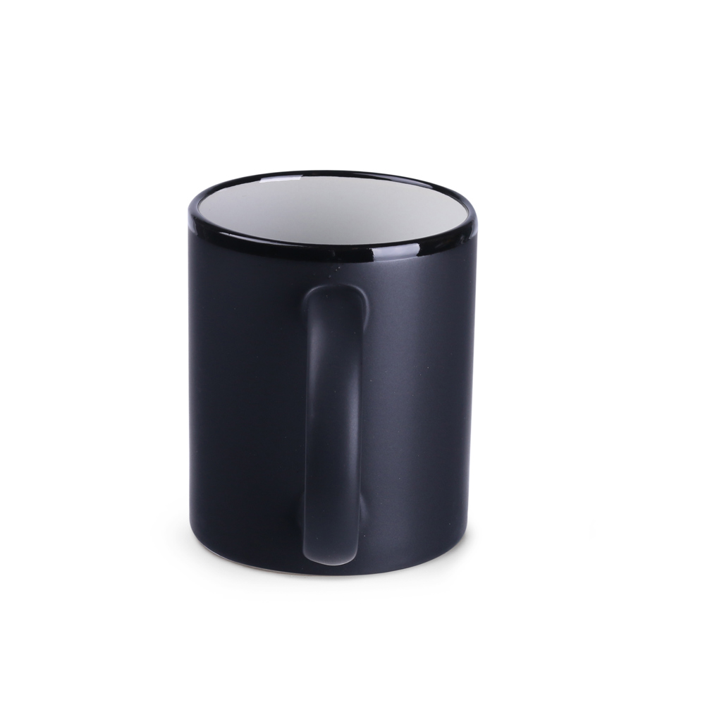 Eine mattschwarze Version des beliebten Modells mit geraden Wänden und einer zylindrischen Form. Es hat mehrere Innenfarben zur Auswahl und eine kontrastierende glänzende Streifenoberfläche, die das einzigartige Branding, das auf ihm angebracht ist, zusätzlich hervorhebt.