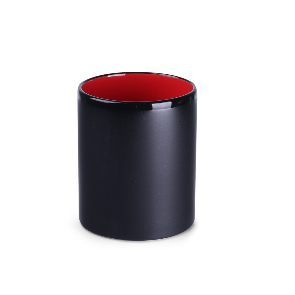 Eine mattschwarze Version des beliebten Modells mit geraden Wänden und einer zylindrischen Form. Es hat mehrere Innenfarben zur Auswahl und eine kontrastierende glänzende Streifenoberfläche, die das einzigartige Branding, das auf ihm angebracht ist, zusätzlich hervorhebt.