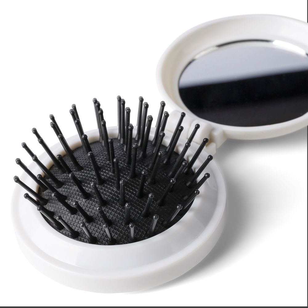 Die Kassette ist aus recyceltem ABS gefertigt und verfügt über eine integrierte Bürste und einen Spiegel. Dank ihres praktischen Designs ist sie ideal für unterwegs und mit einem Recycling-Logo versehen.