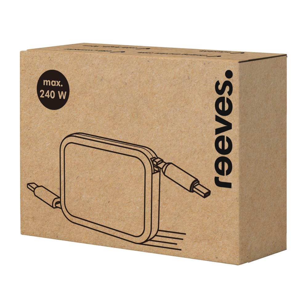 Das REEVES-WATTULA vereint leistungsstarkes Laden mit intelligentem Kabelmanagement. Das USB-C-auf-USB-C-Kabel ermöglicht nicht nur schnellen Datentransfer, sondern überzeugt auch mit einer Ladeleistung von bis zu 240 Watt. Es ist kompatibel mit den aktuellen Notebooks, Tablets und Smartphones.
