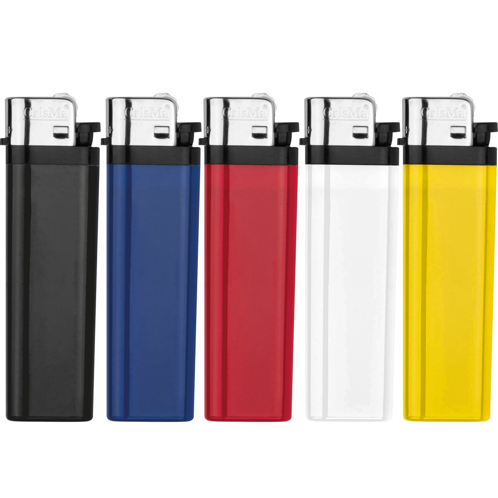 Klassisches Reibradfeuerzeug aus Kunststoff. Selbstverständlich verfügt dieses Modell über die vorgeschriebene Kindersicherung. Ihre Werbung drucken wir auf eine Seite des Feuerzeuges.