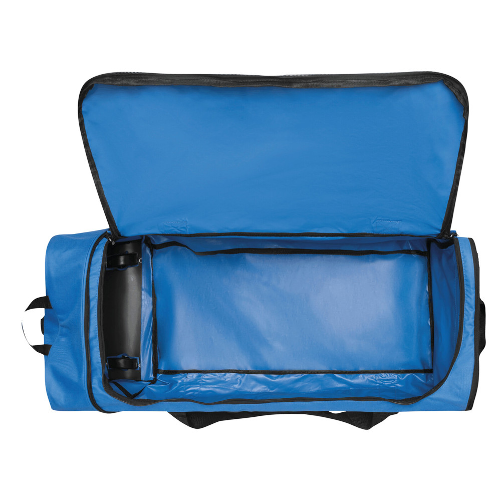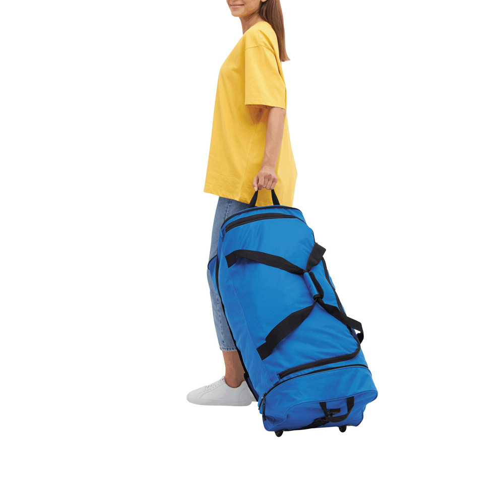 Rollentasche HEX, faltbar: Reißverschluss-Vorfach, Reißverschluss-Hauptfach, 1 seitliches Reißverschluss-Fach, 2 Tragegriffe mit Klettverschluss-Verstärkung, verstell- und abnehmbarer Schultergurt mit Schulterpolster, verstärkter Tragegriff, 2 Leichtlauf-Skaterrollen – das Raumwunder eignet sich perfekt als Reservetasche auf Reisen