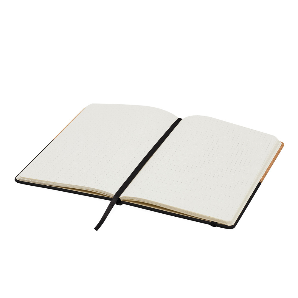 Notizbuch CORKY, im DIN-A5-Format: mit abgerundeten Ecken, Gummiband zum Verschließen, mit integriertem Lesezeichen, Einband aus Kork, 80 Blätter, punktkariert, 70 g/m²