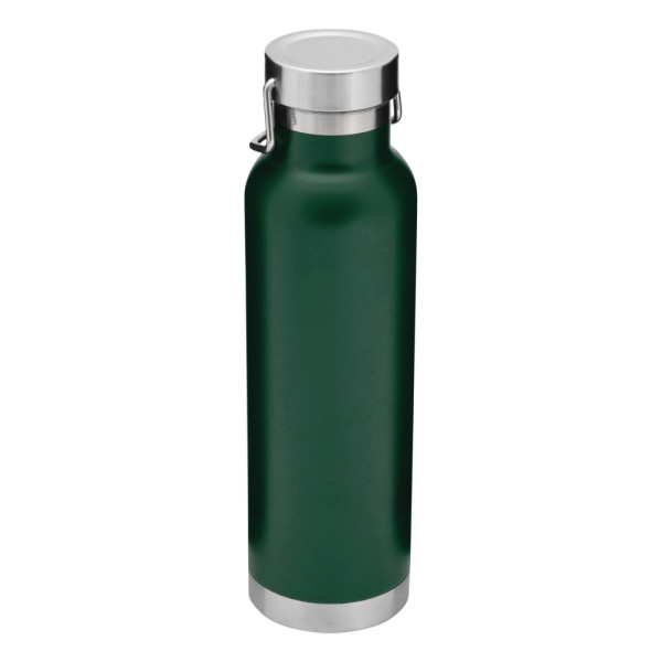 Vakuum-Isolierflasche MILITARY, doppelwandig: mit Kupfer-Isolierung, innen und außen aus Edelstahl, silberner Deckel mit Schraubverschluss, Silikon-Dichtring und Tragegiff, Füllmenge ca. 650 ml, hält ca. 12 Stunden warm und bis zu 24 Stunden kalt, in Box