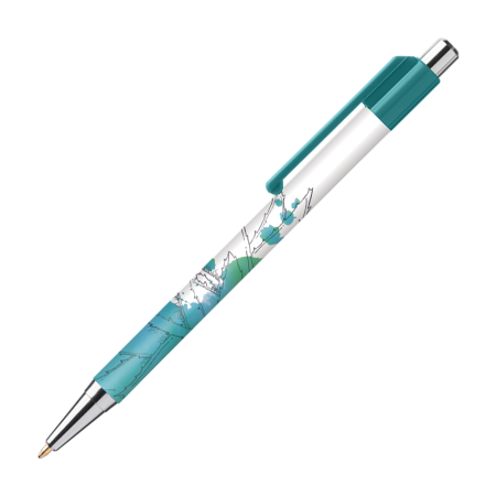 BATAM Kugelschreiber Chrome mit farbigen Akzenten und mit 4c-Druck all-over - Drücker, Spitze und Clip in einer Vielzahl von Farben erhältlich, 360° Folientransfer-Digitaldruck. Schwarzschreibende X-20-Mine.