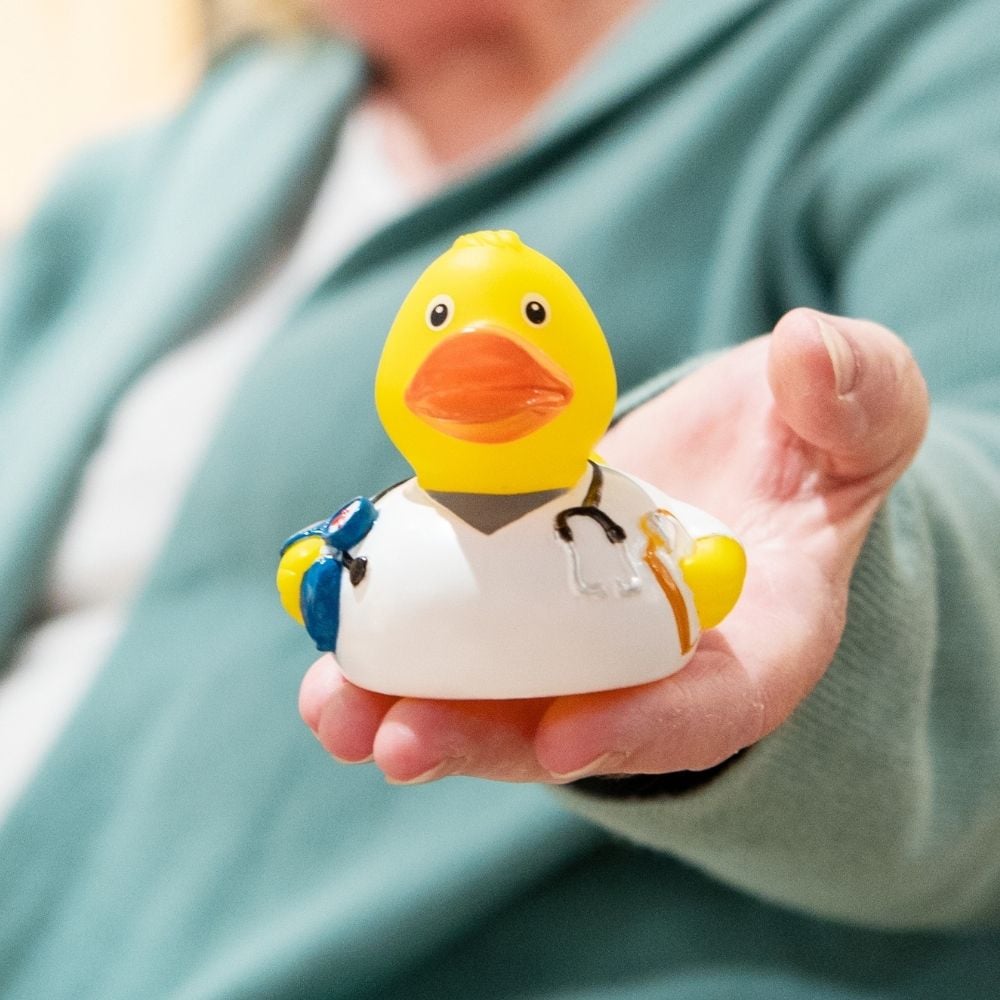 Die Quietsche-Ente Pflegekraft steht für all die Helden und Heldinnen, die uns stets mit voller Leidenschaft und allen Kräften unterstützen. Geballte Pflege-Power zum Verschenken, Sammeln oder als freundliche Erinnerung an den letzten Aufenthalten.