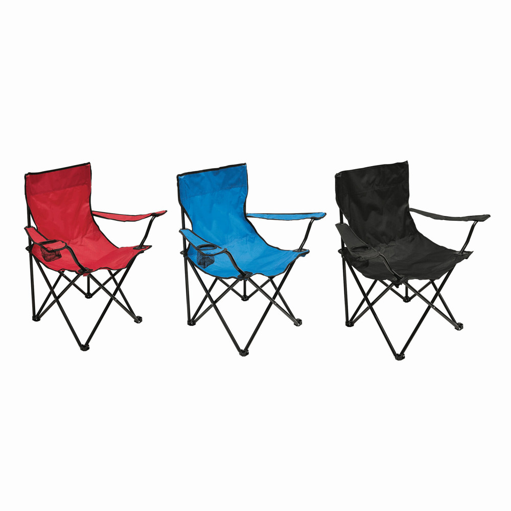 Strand- und Campingstuhl SUNNY DAY: faltbarer Stuhl mit praktischem Getränkehalter in der rechten Armlehne, zusammenklappbar, robust und leicht, Tragfähigkeit ca. 90-100 kg, inkl. Polyester-Aufbewahrungstasche mit Tragegurt