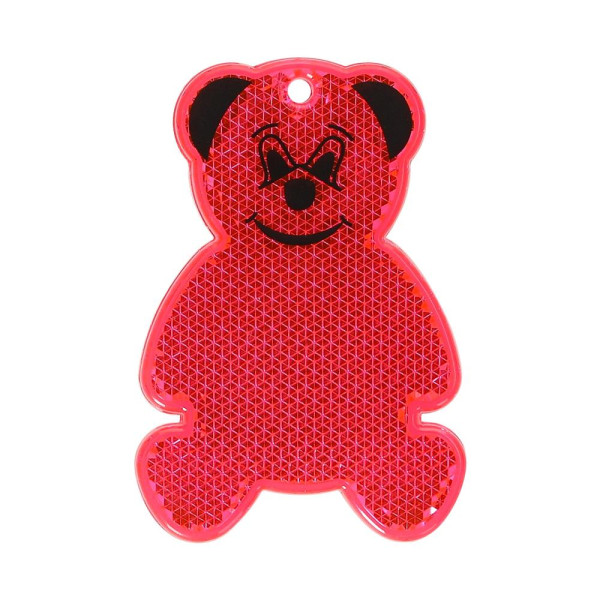 Reflektor in Form eines Bärs. Mit Öse und Schnur. Inklusive Konturendruck (Anstelle des Konturendrucks ist auch ein einfarbiger Kundendruck möglich). Bei diesem Artikel handelt es sich um einen reflektierenden Werbeanhänger.