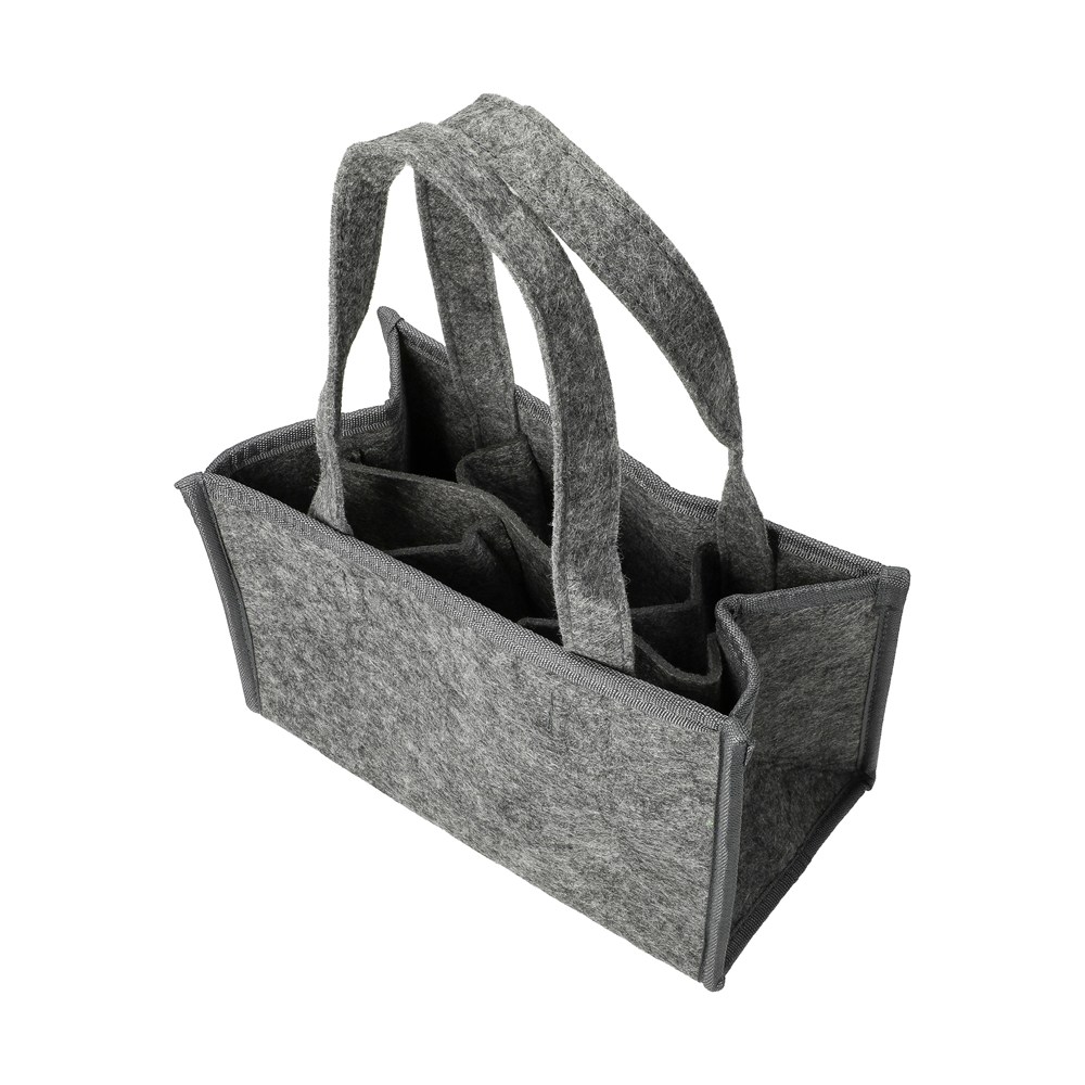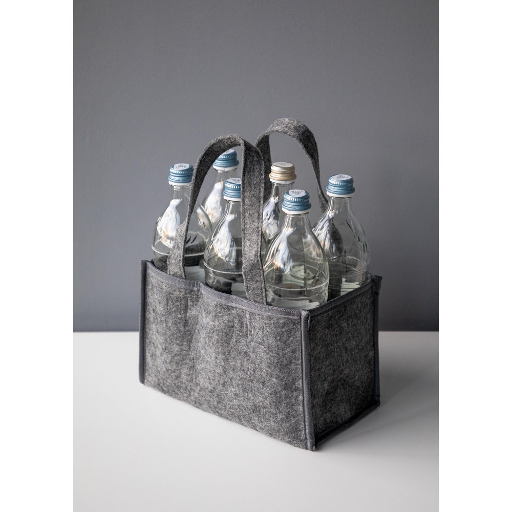 Stabile Getränketasche aus recyceltem Polyesterfilz: Hier lassen sich bis zu 6 Trinkflaschen (jeweils max. 0,70 Liter) sicher verstauen. Die Trennwände verhindern lästiges Klirren und schützen die Getränkeflaschen vor Beschädigung. Inklusive breitem Henkel für einfachen und bequemen Transport.