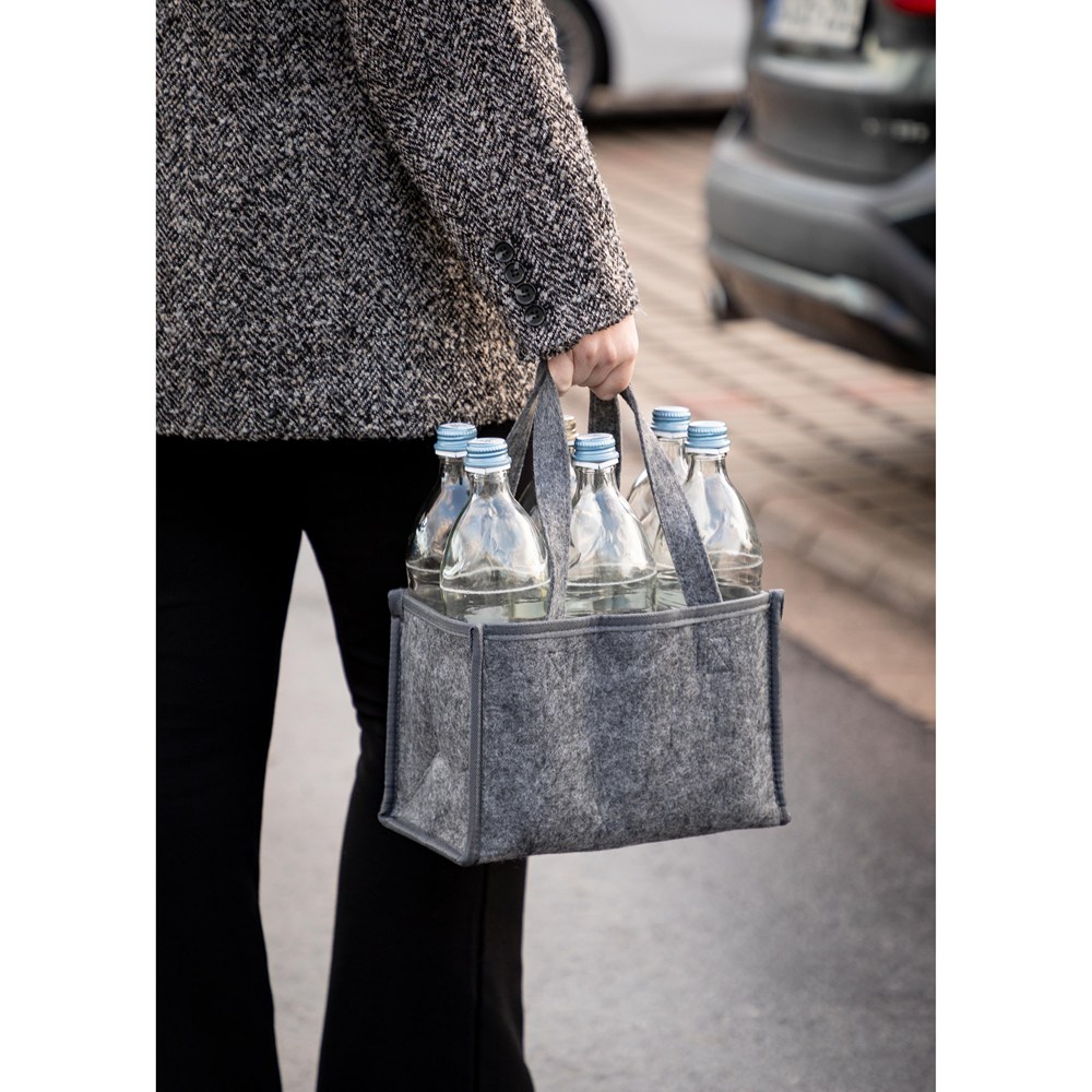 Stabile Getränketasche aus recyceltem Polyesterfilz: Hier lassen sich bis zu 6 Trinkflaschen... mehr