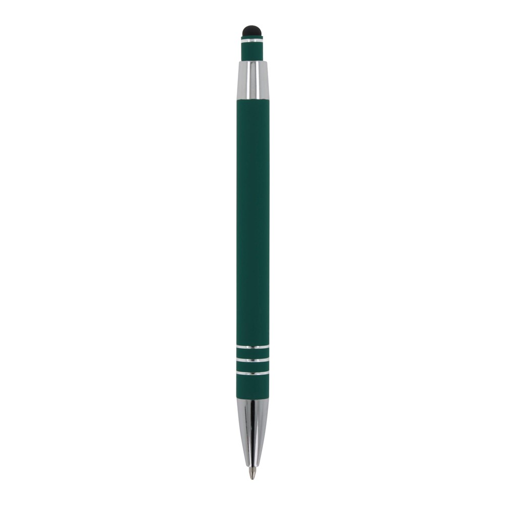 Kugelschreiber aus Aluminium mit elegantem Soft-Touch-Finish und Stylus. Mit massivem Metallclip. Schreibfarbe: blau.
