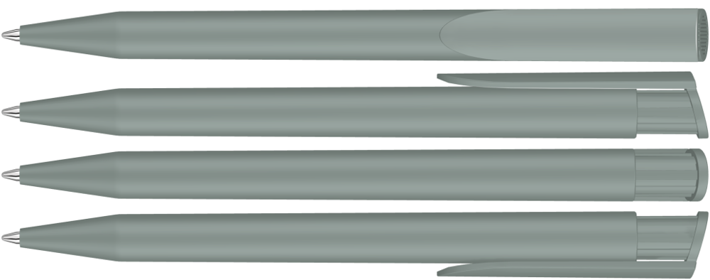 Druckkugelschreiber mit gedeckt mattem Gehäuse und Clipdrücker.