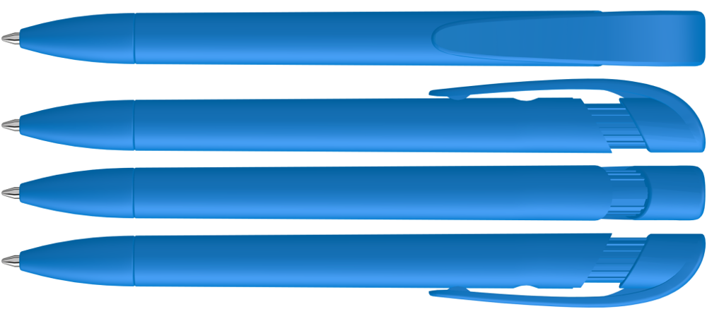 Druckkugelschreiber mit gedeckt mattem Gehäuse, breitem Bogenclipdrücker und Spitze. mehr