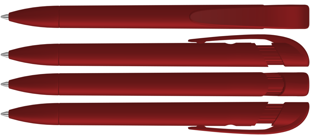 Druckkugelschreiber mit gedeckt mattem Gehäuse, breitem Bogenclipdrücker und Spitze. mehr