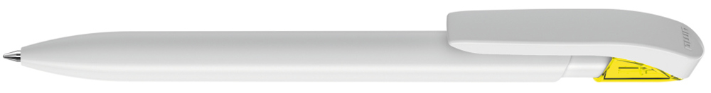 Druckkugelschreiber mit gedeckt glänzendem Gehäuse in uni weiß oder schwarz und farbig transparent glänzende Manschette.