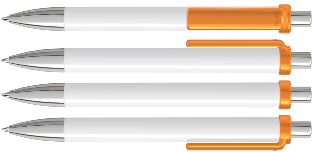 Druckkugelschreiber mit gedeckt glänzendem Schaft, transparent glänzendem Clip, Metallspitze und Metalldrücker glanzverchromt.