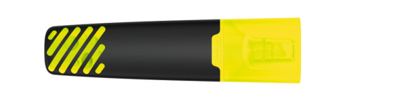 Flüssig-Textmarker mit schwarzem Schaft und transparenter Kappe in Schreibfarbe. mehr