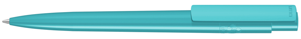 Druckkugelschreiber aus recyceltem PET-Material mit gedeckt glänzendem Gehäuse und Clip.