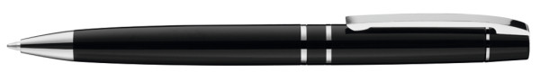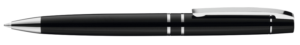 Schlanker Metall-Drehkugelschreiber mit Softdrehmechanik und gefedertem Clip. Beschlagteile glanzverchromt.