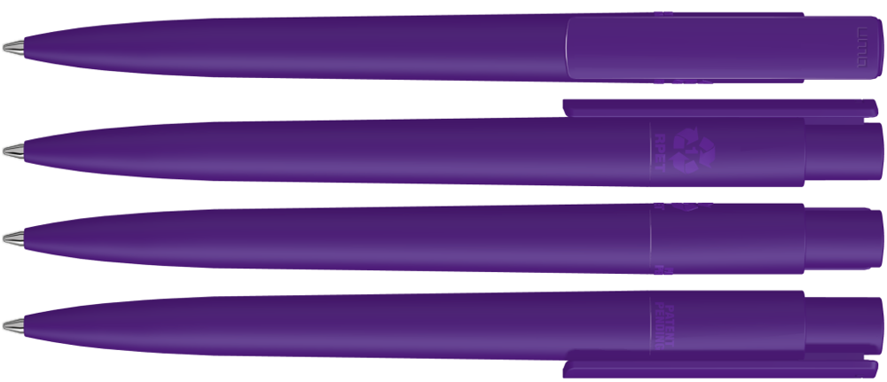 Druckkugelschreiber aus recyceltem PET-Material mit matt gedecktem Gehäuse und Clip.