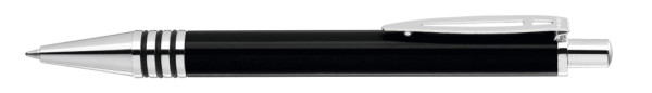 Metall-Druckkugelschreiber mit glänzend lackiertem Aluminiumschaft und 3 eingelassenen, kombinierbaren Gummiringen. Metallbeschlagteile glanzverchromt.